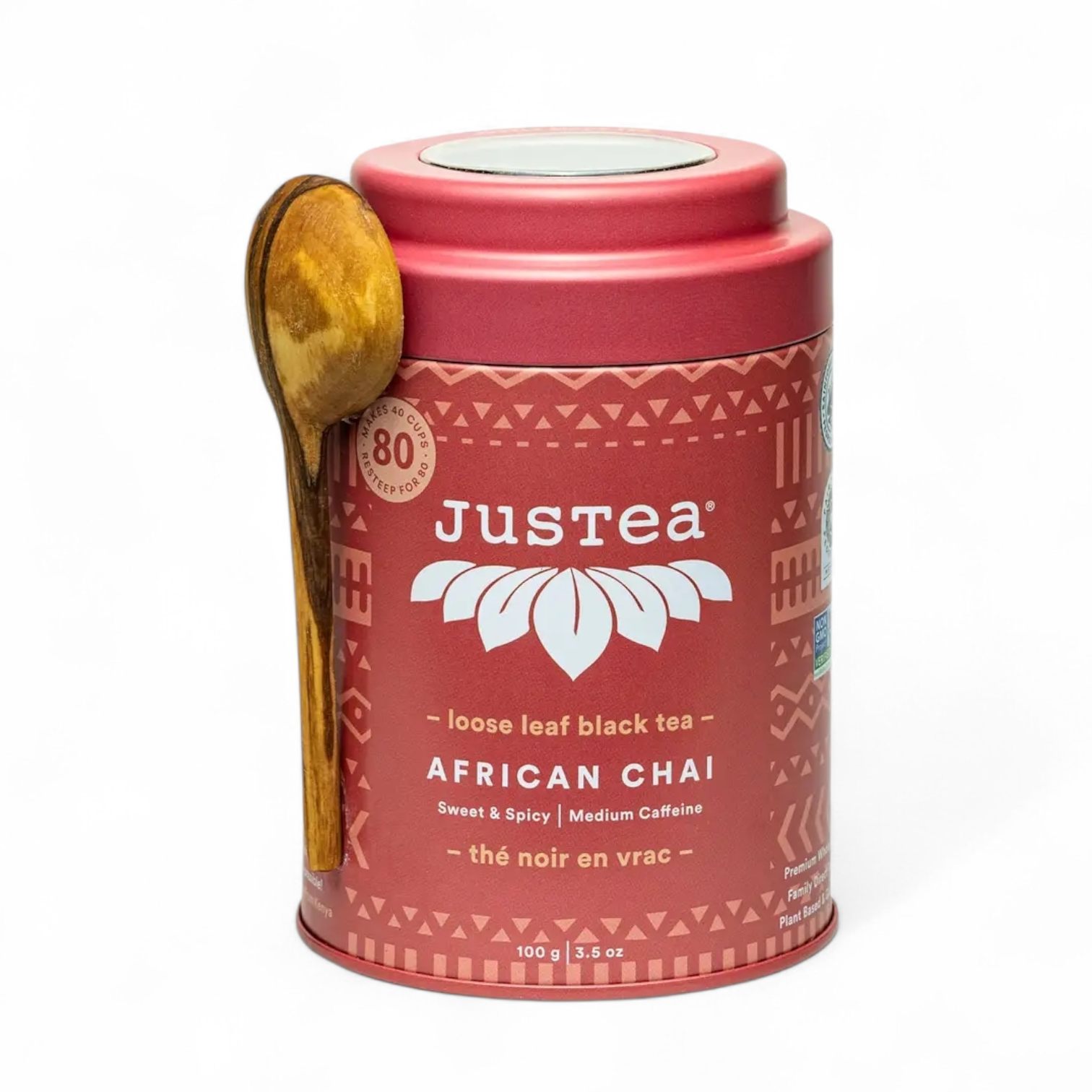 JusTea African Chai Tin & Spoon - Organic, Fair-Trade, Black Tea