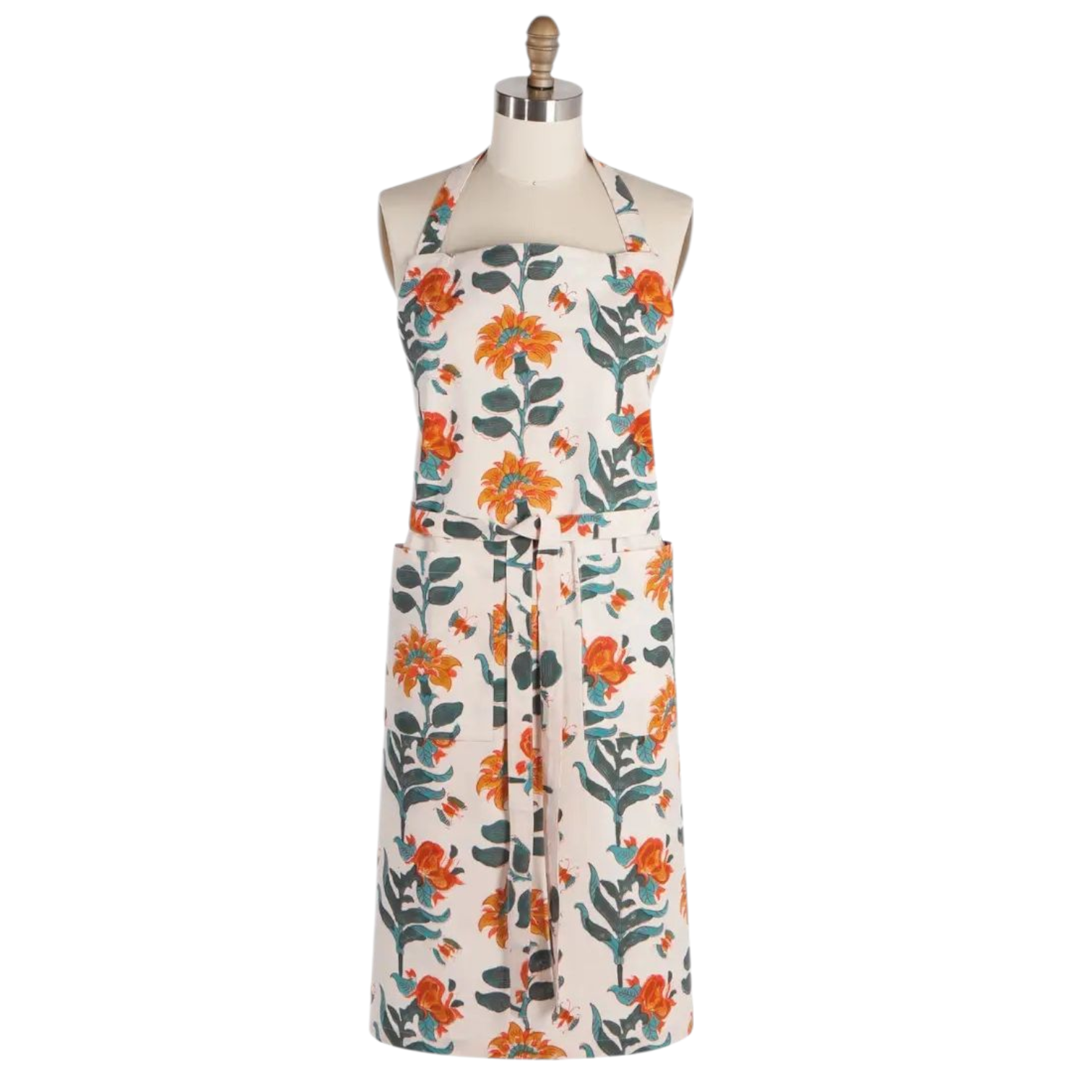 When you wear a hand-block-printed apron, the artistry shines through—each print slightly unique, each variation a mark of its handmade origin.